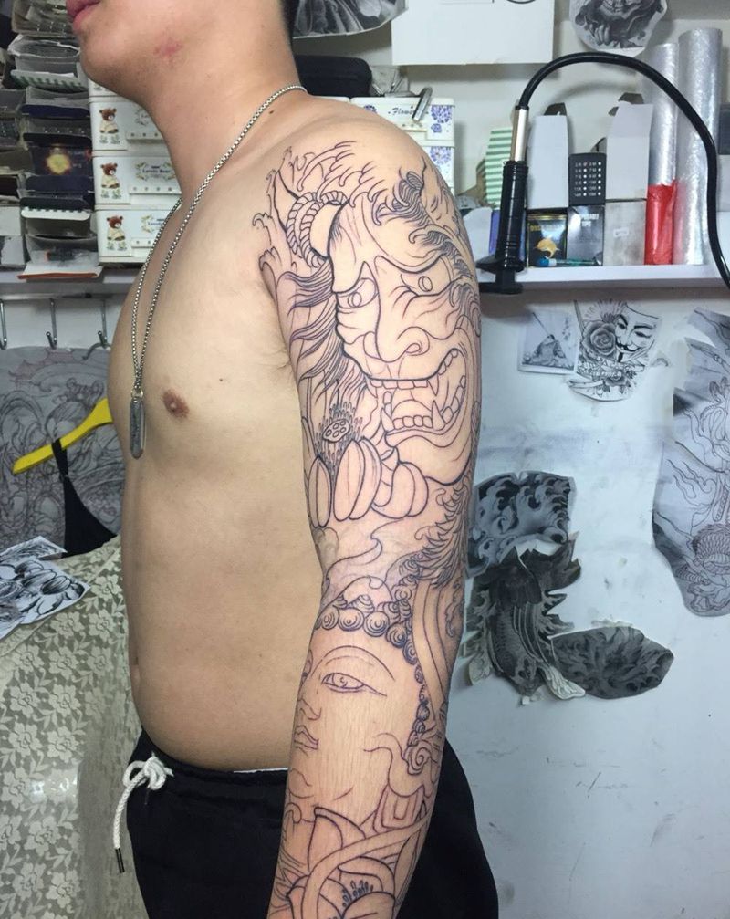 当前位置: 首页 >浙江省宁波市纹身店-宁波猛虎堂刺青工作室纹身图案>花臂纹身图片_成品手臂传统人物鬼神原创纹身图案