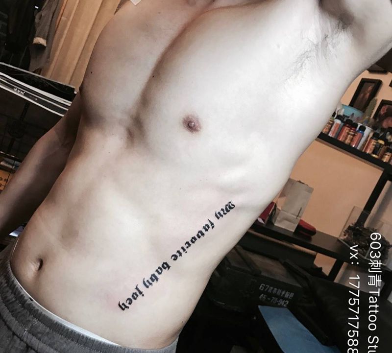 • T关于私处得爱!纹身图片_成品腹部清新字符图腾纹身图案