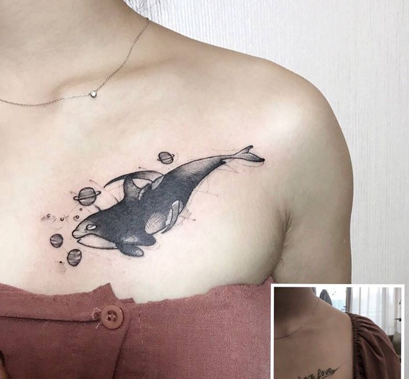 • 女性大花胸纹身_43张霸气漂亮的女性大花胸纹身图案作品