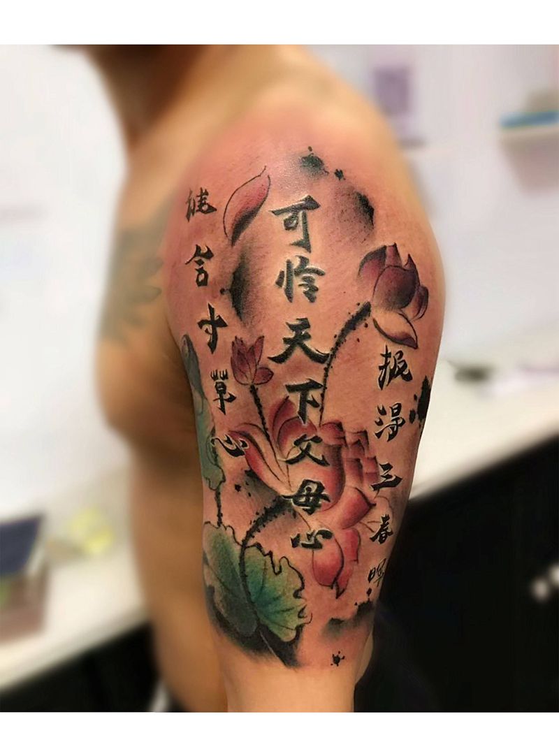 当前位置: 首页 >浙江省宁波市纹身店-流芳刺艺纹身图案>荷花纹身图片_手臂纹身图案