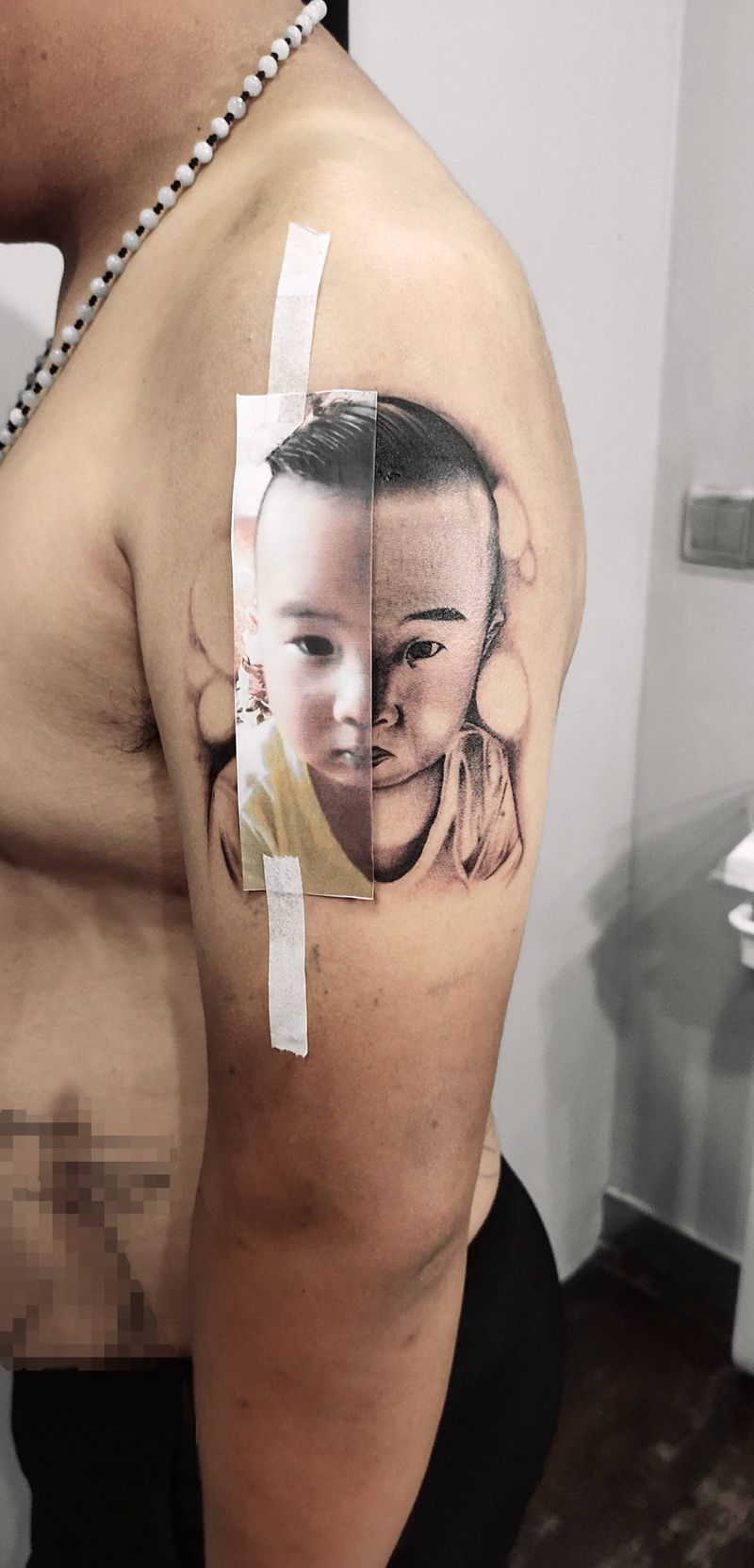 当前位置: 首页 >浙江省宁波市纹身店-流芳刺艺纹身图案>肖像纹身图片_手臂肖像写实纹身图案