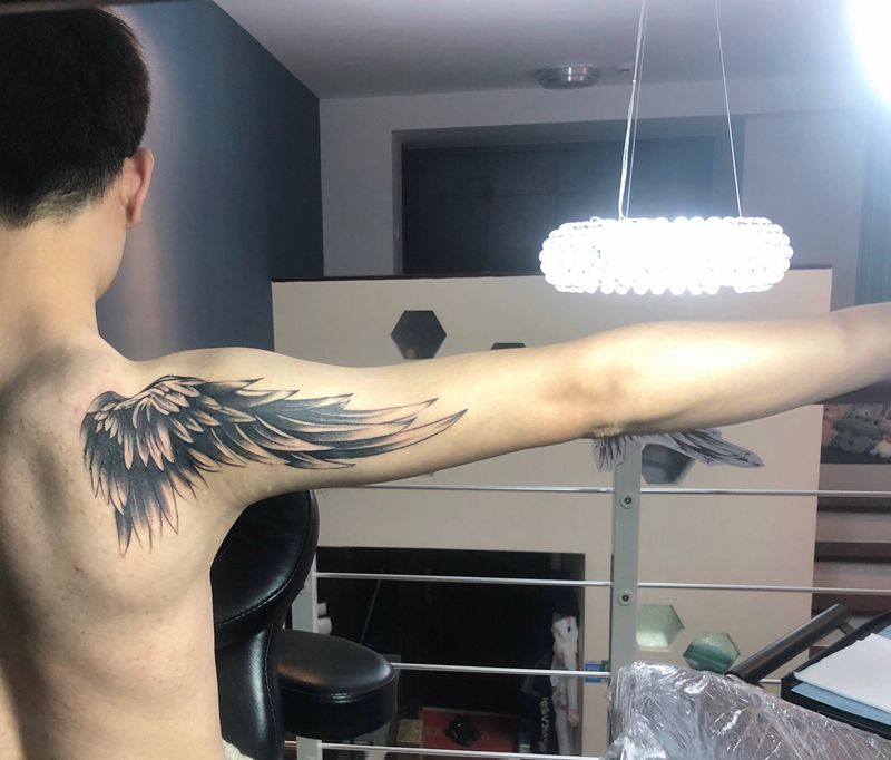 当前位置: 首页 >浙江省杭州市纹身店-木彡刺青纹身图案>翅膀纹身图片_手臂点刺纹身图案