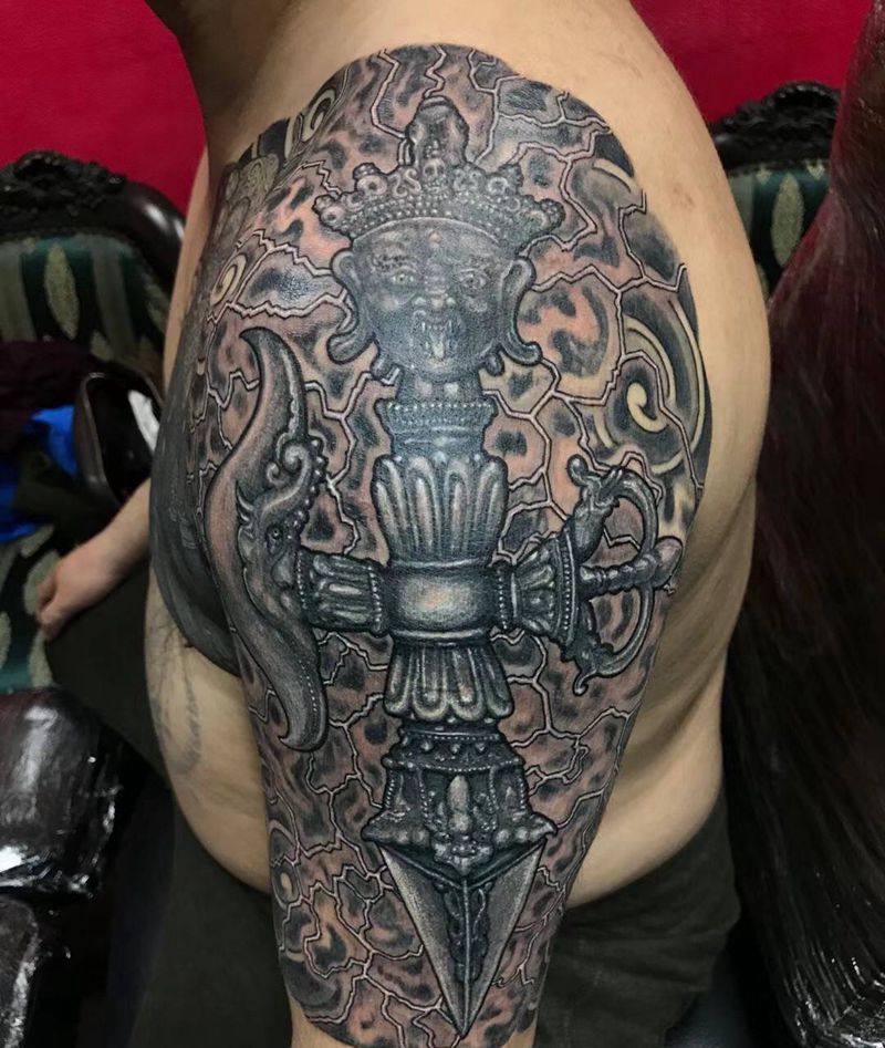 降魔杵纹身图片_手臂老传统纹身图案