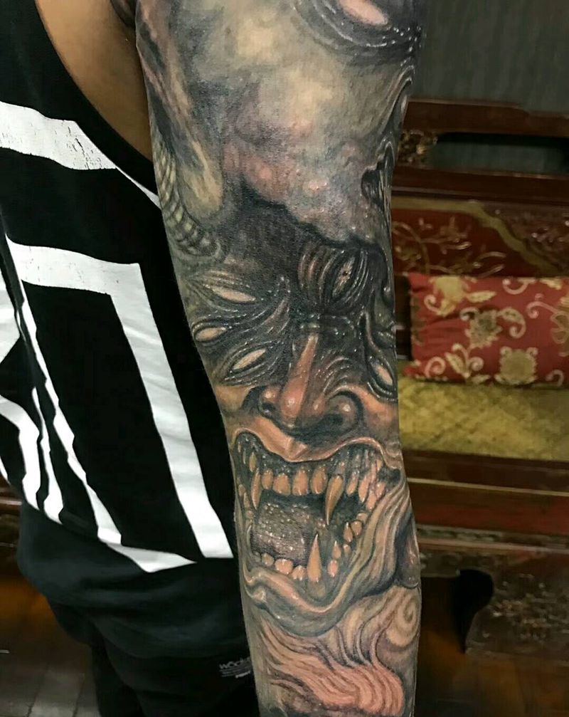 惊骇最爱纹身图片_手臂老传统纹身图案