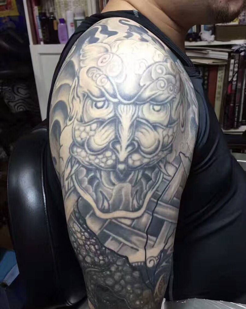 遮盖作品未完成纹身图片_成品手臂传统写实原创遮盖鬼神纹身图案
