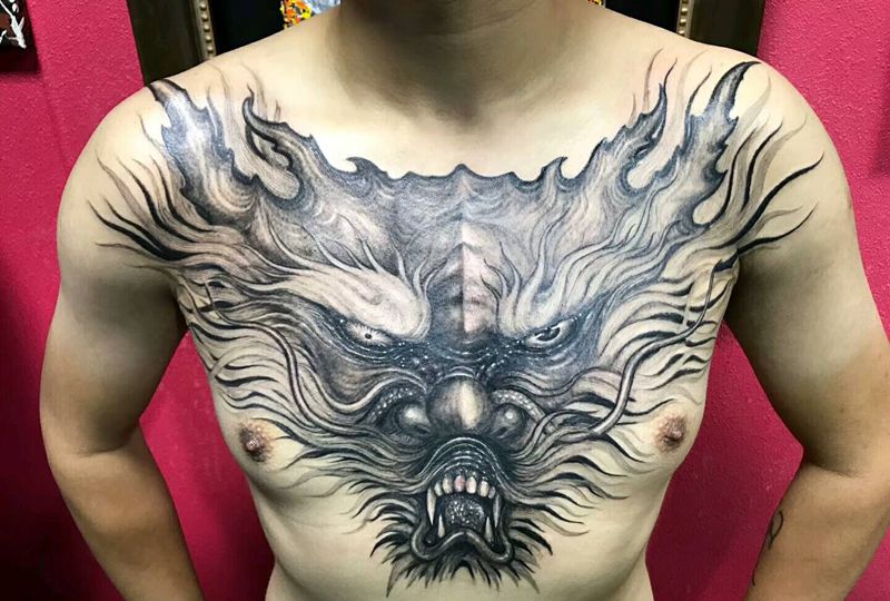 当前位置: 首页 >浙江省宁波市纹身店-惊骇空间纹身图案>花胸龙纹身图片_胸部纹身图案