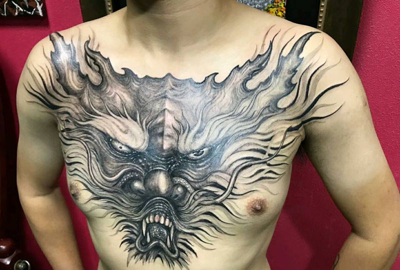 当前位置: 首页 >浙江省宁波市纹身店-惊骇空间纹身图案>花胸龙纹身图片_胸部纹身图案