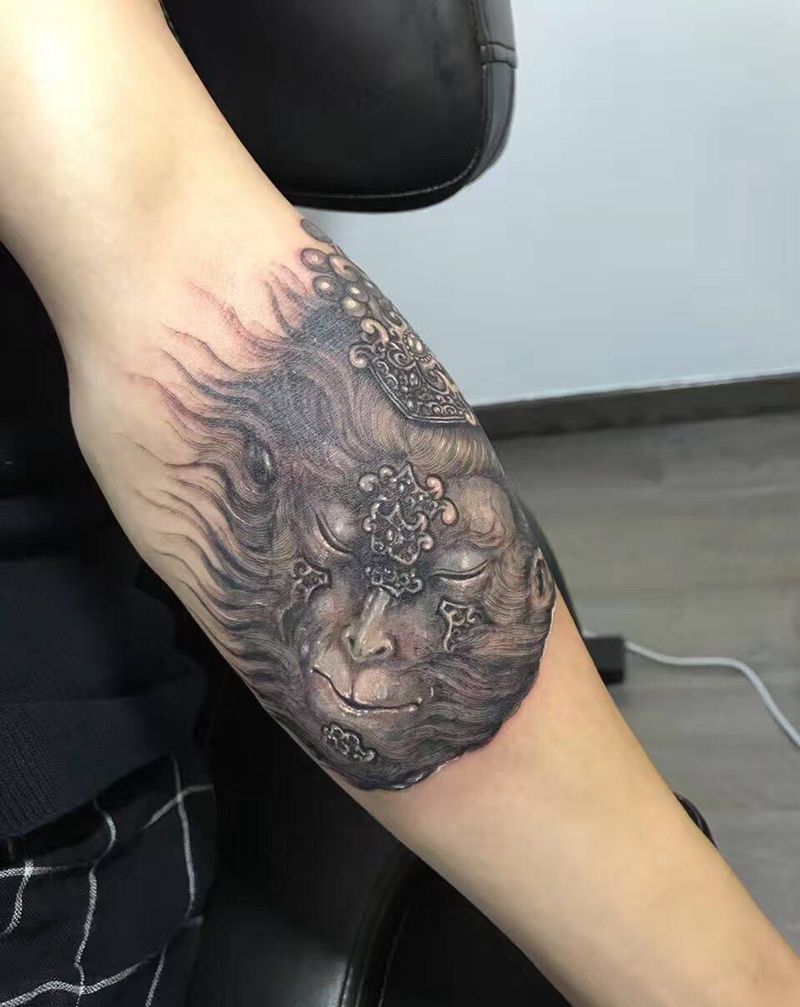猴将军纹身图片_成品手臂原创传统写实纹身图案