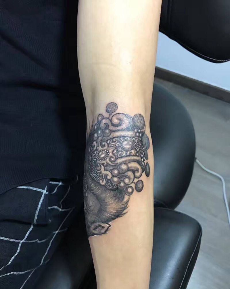 当前位置: 首页 >浙江省宁波市纹身店-惊骇空间纹身图案>猴将军纹身图片_成品手臂原创传统写实纹身图案