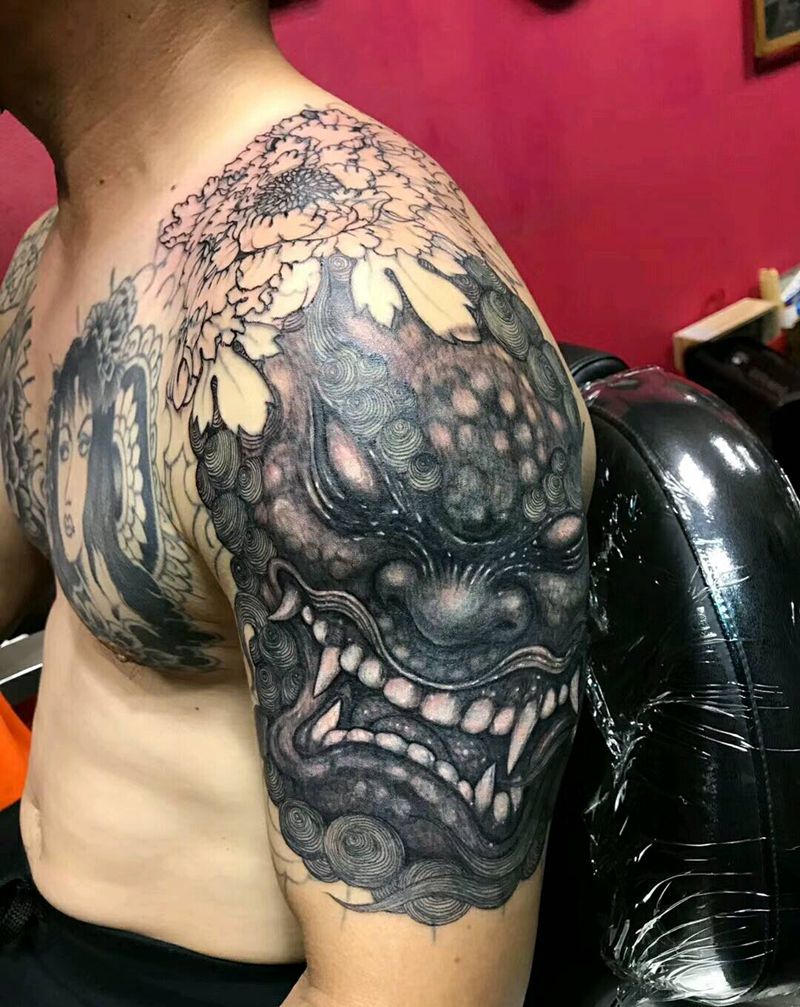 • 黑灰满背纹身图案