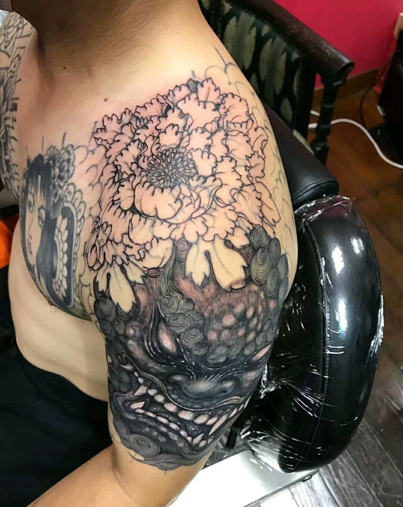 • 女性大花胸纹身_43张霸气漂亮的女性大花胸纹身图案作品