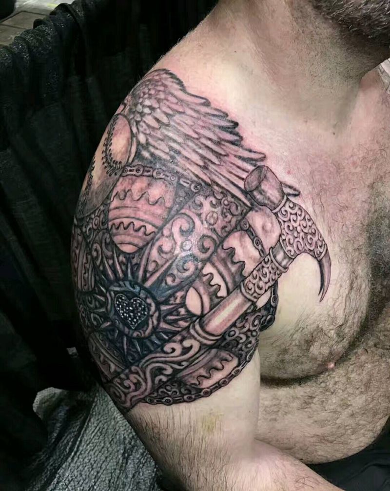 • 纹身吧推荐的披肩图腾半胛纹身图案作品展示
