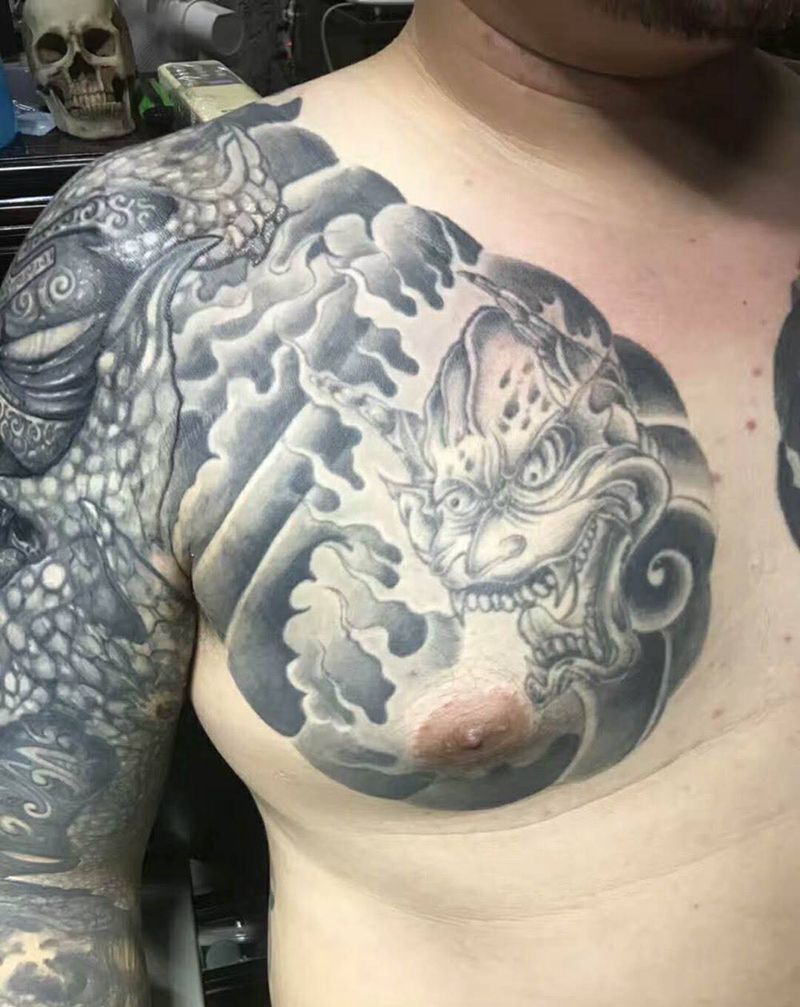 关于修改遮盖纹身图片_成品手臂胸部传统写实鬼神原创遮盖纹身图案