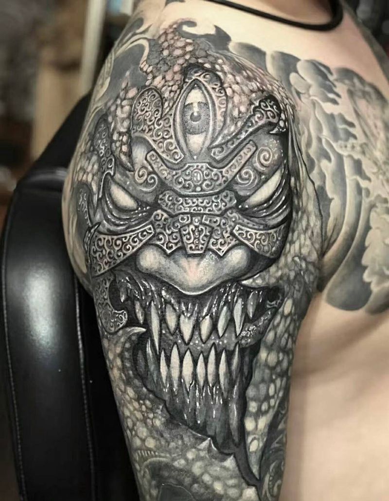关于修改遮盖纹身图片_成品手臂胸部传统写实鬼神原创遮盖纹身图案
