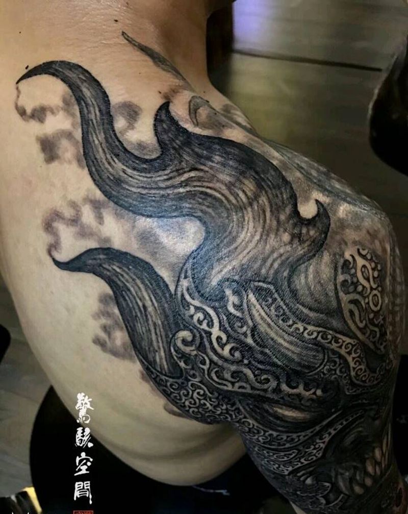 • 纹身吧推荐的披肩图腾半胛纹身图案作品展示