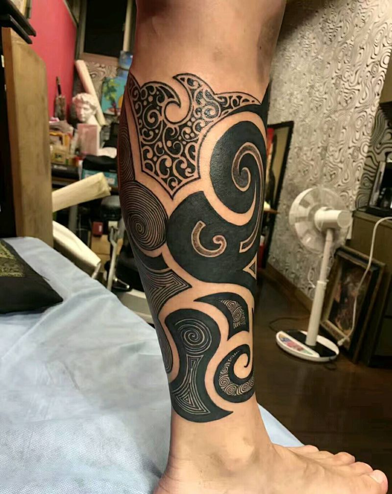 当前位置: 首页 >浙江省宁波市纹身店-惊骇空间纹身图案>图腾纹身图片_腿部图腾原创成品纹身图案