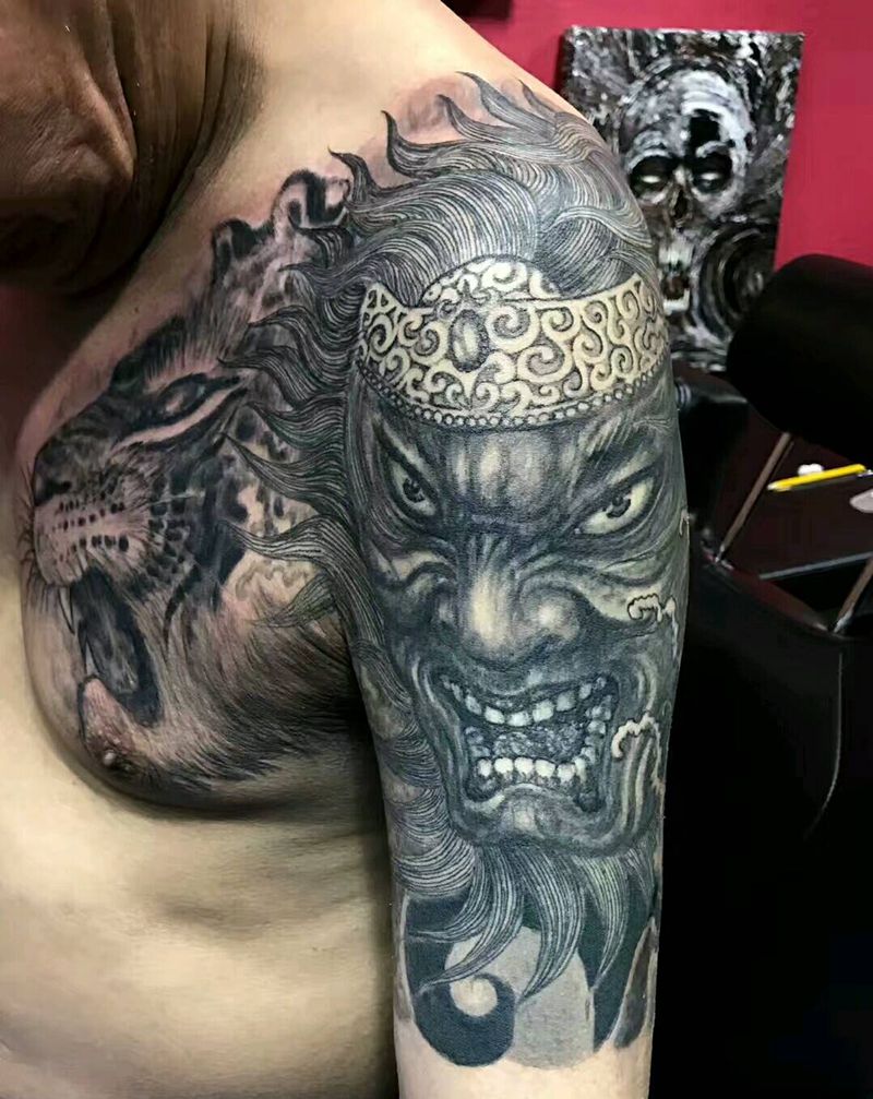当前位置: 首页 >浙江省宁波市纹身店-惊骇空间纹身图案>武松打虎纹身图片