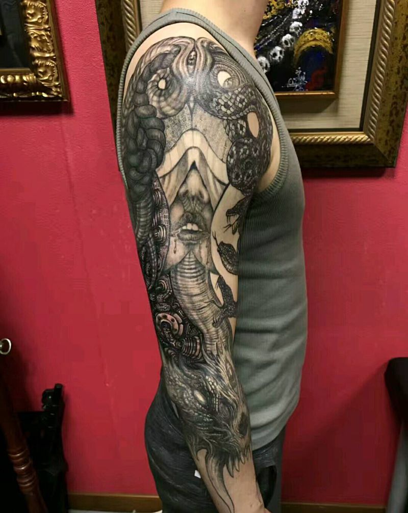 驚駭式纹身图片_驚駭原创设计花臂纹身图案