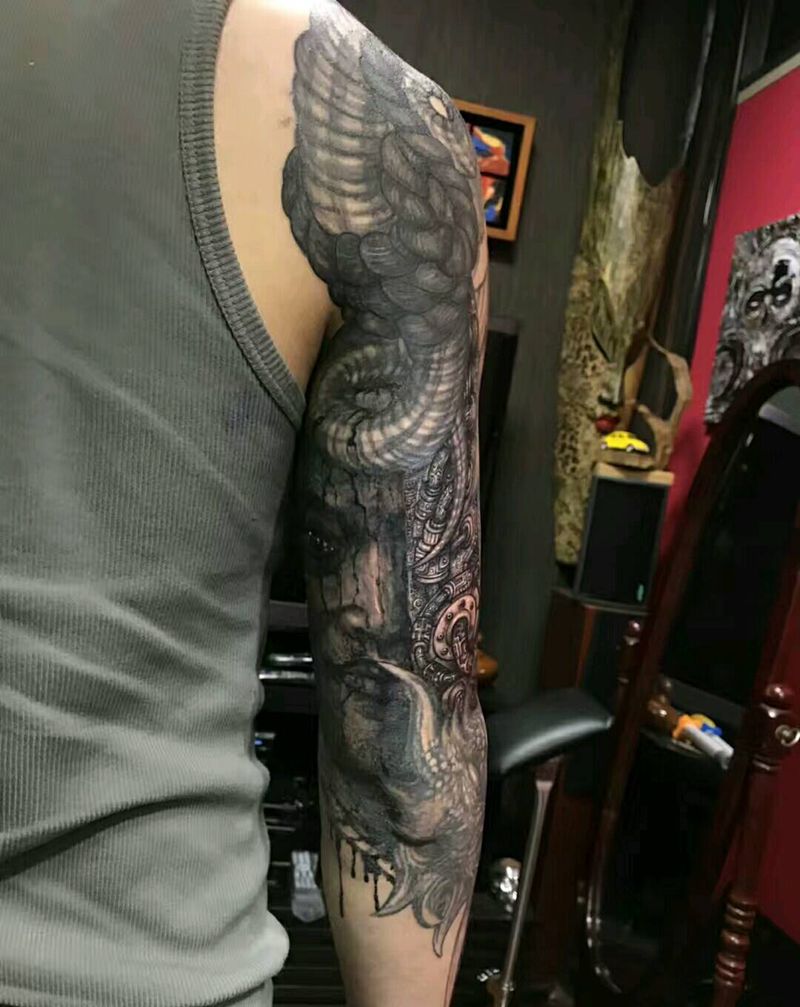 驚駭式纹身图片_驚駭原创设计花臂纹身图案
