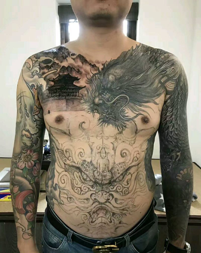 • 黑灰满背纹身图案