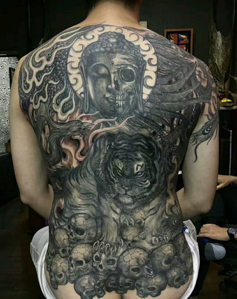 • 黑灰满背纹身图案