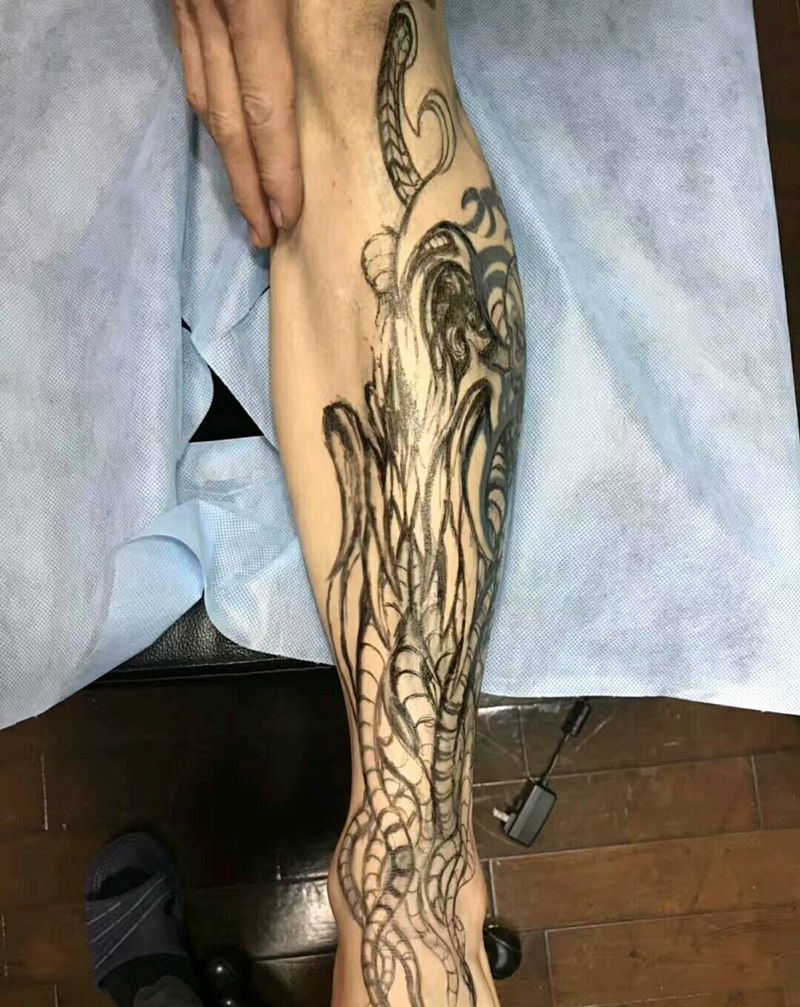 • T网红王老大花腿龙纹身图片_腿部新传统纹身图案