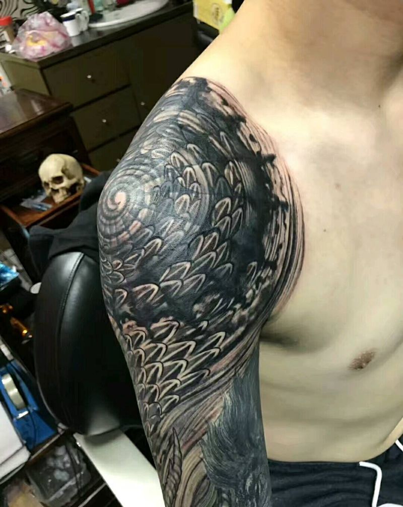 • 纹身吧推荐的披肩图腾半胛纹身图案作品展示