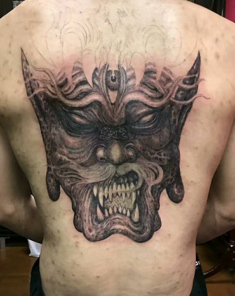 • 黑灰满背纹身图案