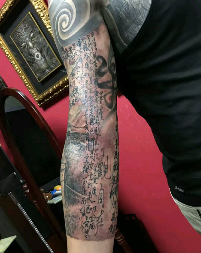 当前位置: 首页 >浙江省宁波市纹身店-惊骇空间纹身图案>经文纹身图片