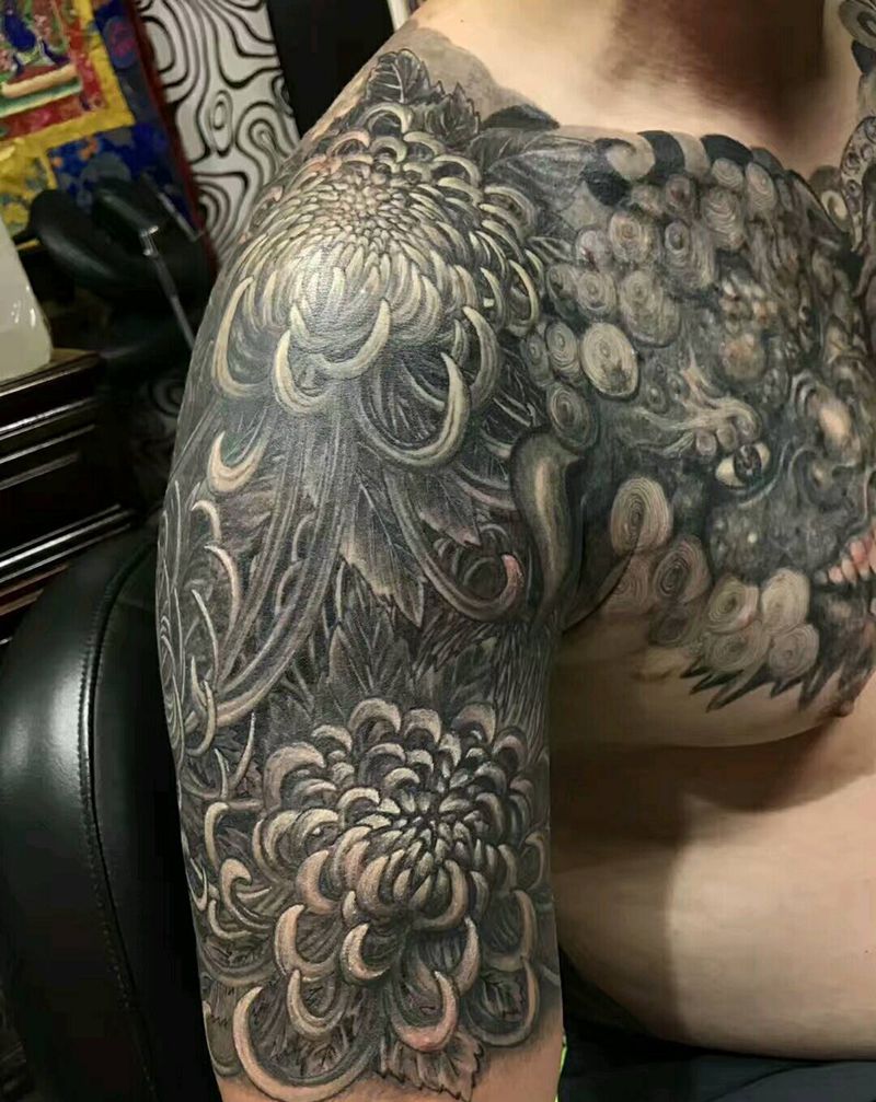 当前位置: 首页 >浙江省宁波市纹身店-惊骇空间纹身图案>富贵菊纹身图片