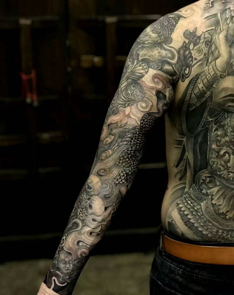 花臂纹身图片_手臂暗黑原创花臂纹身图案