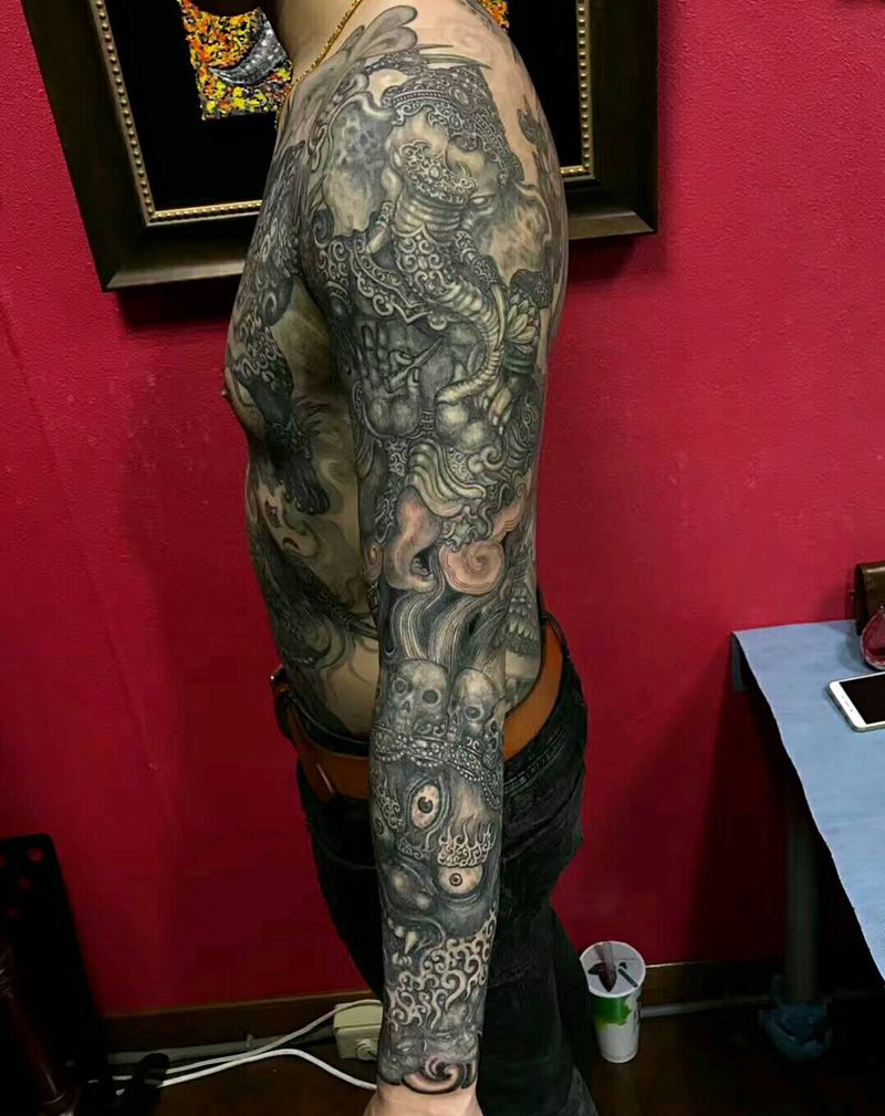 当前位置: 首页 >浙江省宁波市纹身店-惊骇空间纹身图案>花臂纹身图片_手臂暗黑原创花臂纹身图案