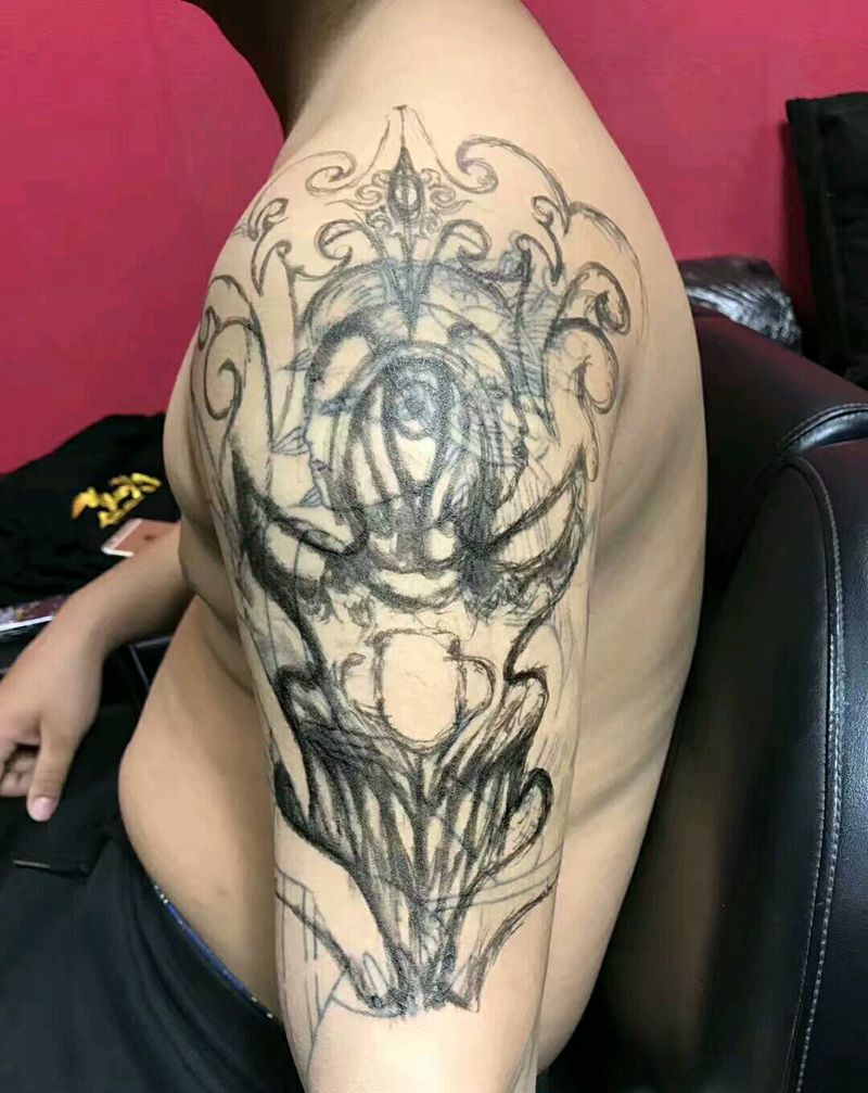 当前位置: 首页 >浙江省宁波市纹身店-惊骇空间纹身图案>遮盖纹身图片_手臂原创暗黑恶魔纹身图案