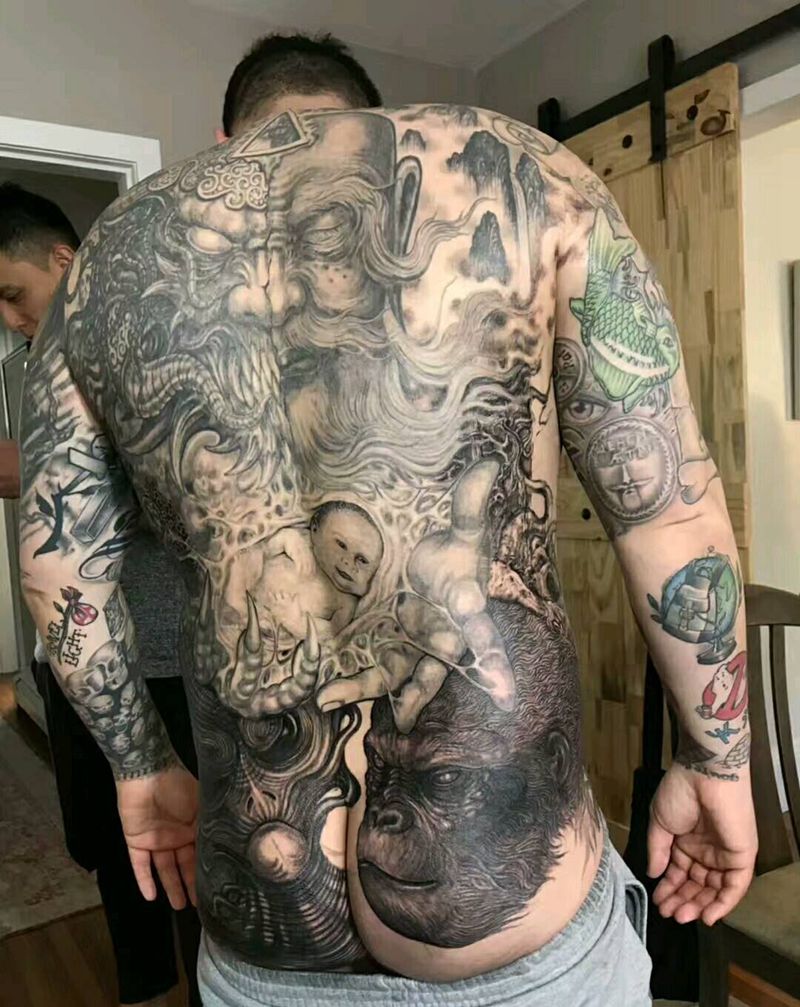 • T云龙九郎纹身图片_背部老传统云龙九郎纹身图案