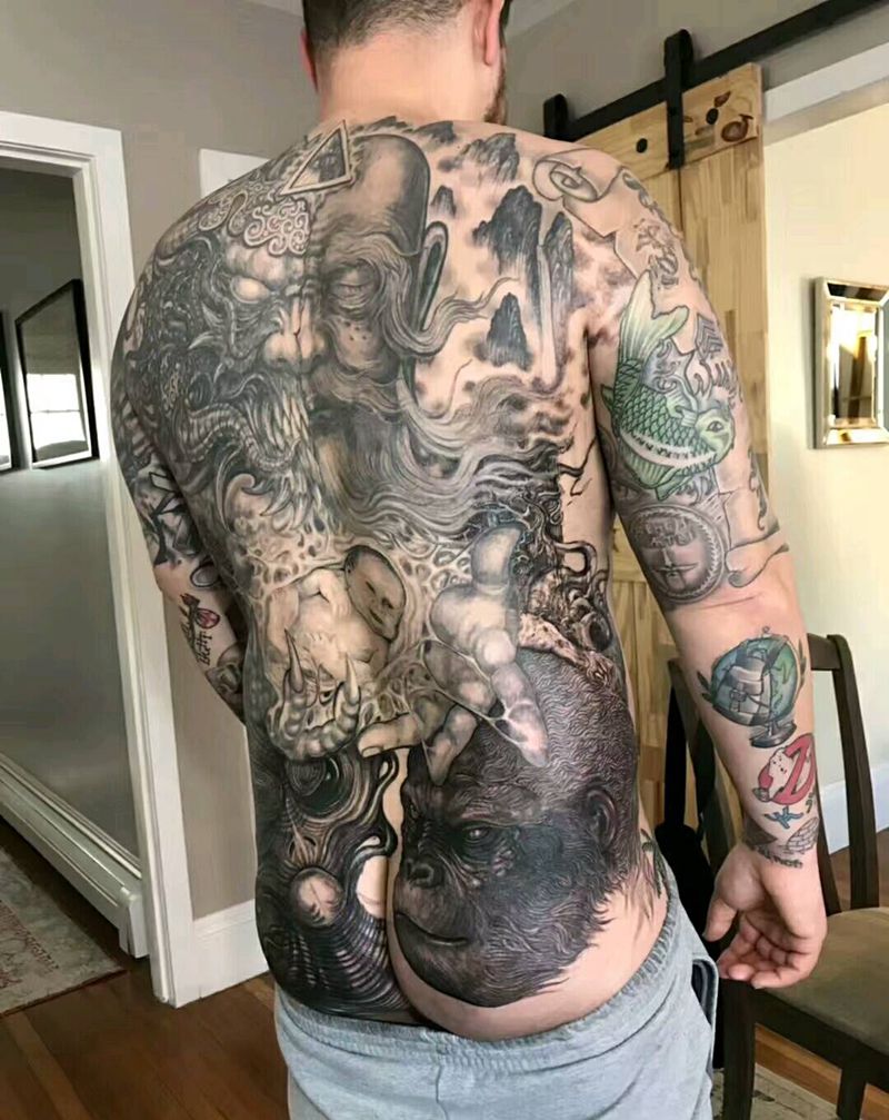 • 黑灰满背纹身图案