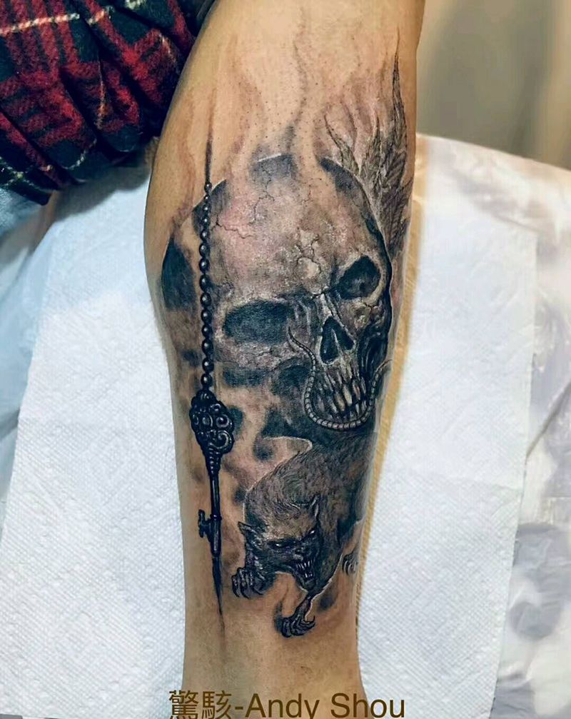 当前位置: 首页 >浙江省宁波市纹身店-惊骇空间纹身图案>暗黑纹身图片_腿部纹身图案