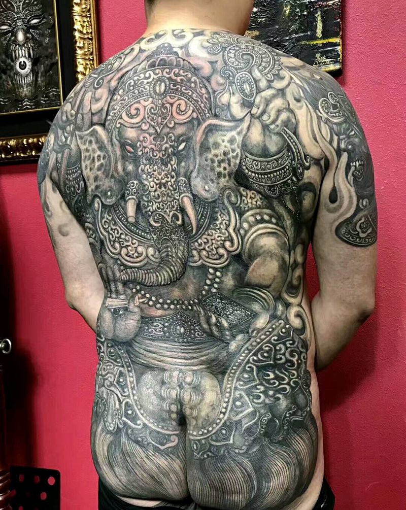 当前位置: 首页 >浙江省宁波市纹身店-惊骇空间纹身图案>象神纹身图片_背部纹身图案