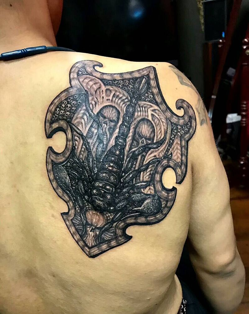 当前位置: 首页 >浙江省宁波市纹身店-惊骇空间纹身图案>天蝎座纹身图片_背部图腾纹身图案