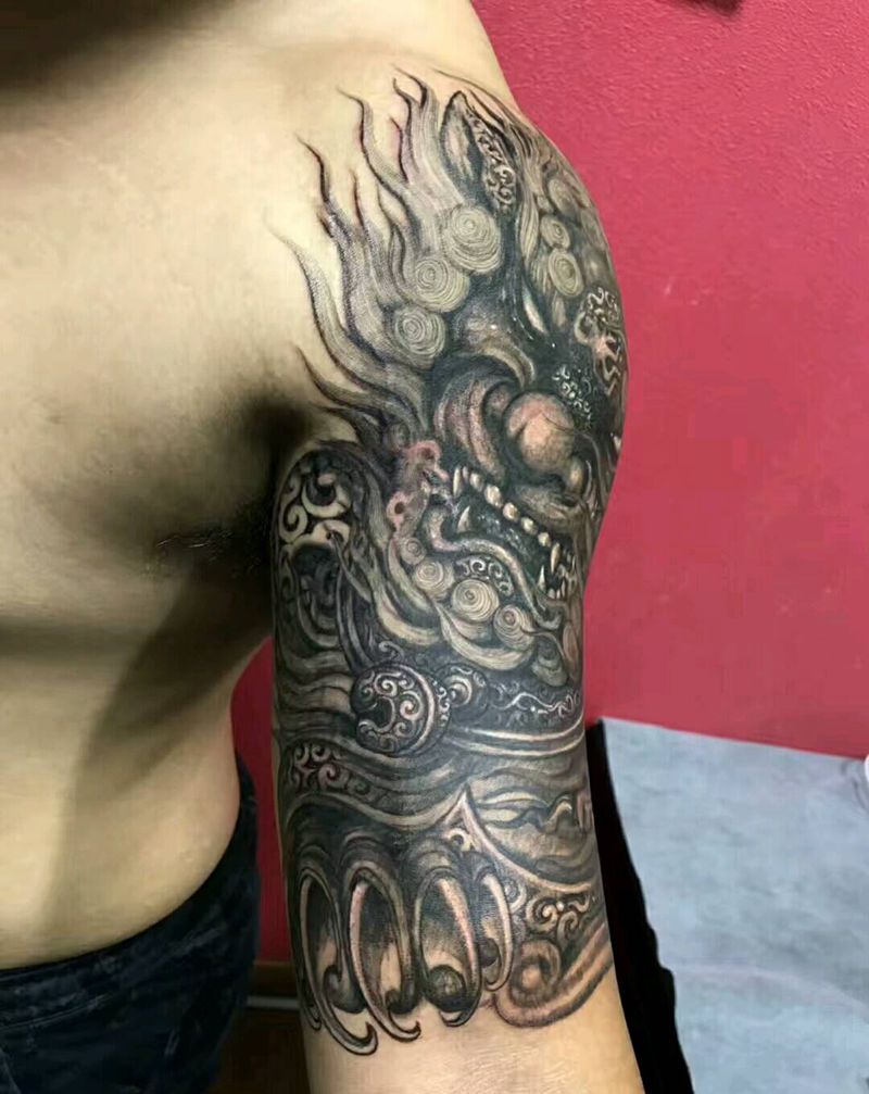 当前位置: 首页 >浙江省宁波市纹身店-惊骇空间纹身图案>狮子纹身图片_手臂纹身图案