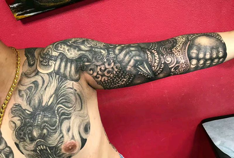 当前位置: 首页 >浙江省宁波市纹身店-惊骇空间纹身图案>神兽纹身图片_手臂背部纹身图案