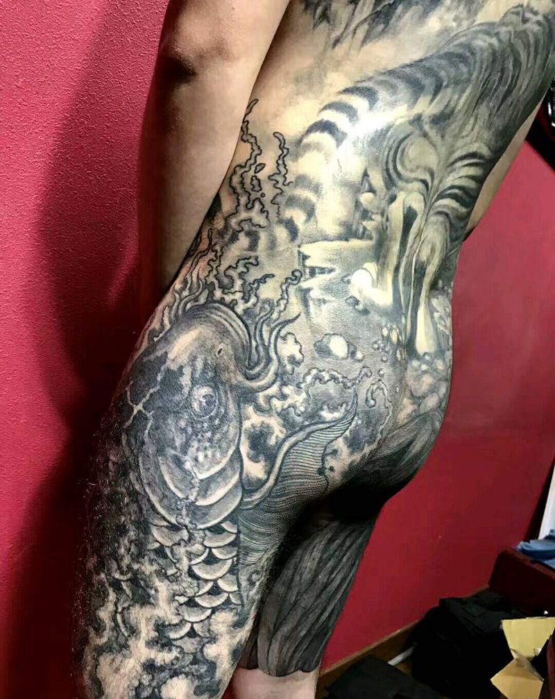 • 黑灰满背纹身图案