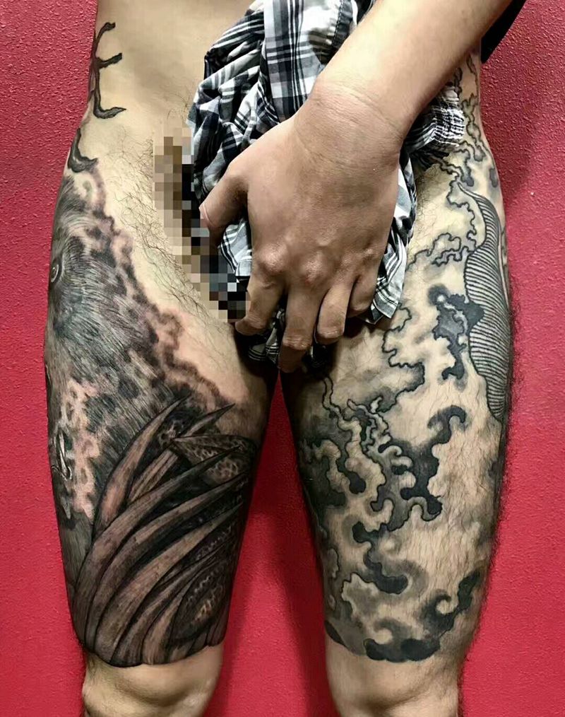 • T网红王老大花腿龙纹身图片_腿部新传统纹身图案