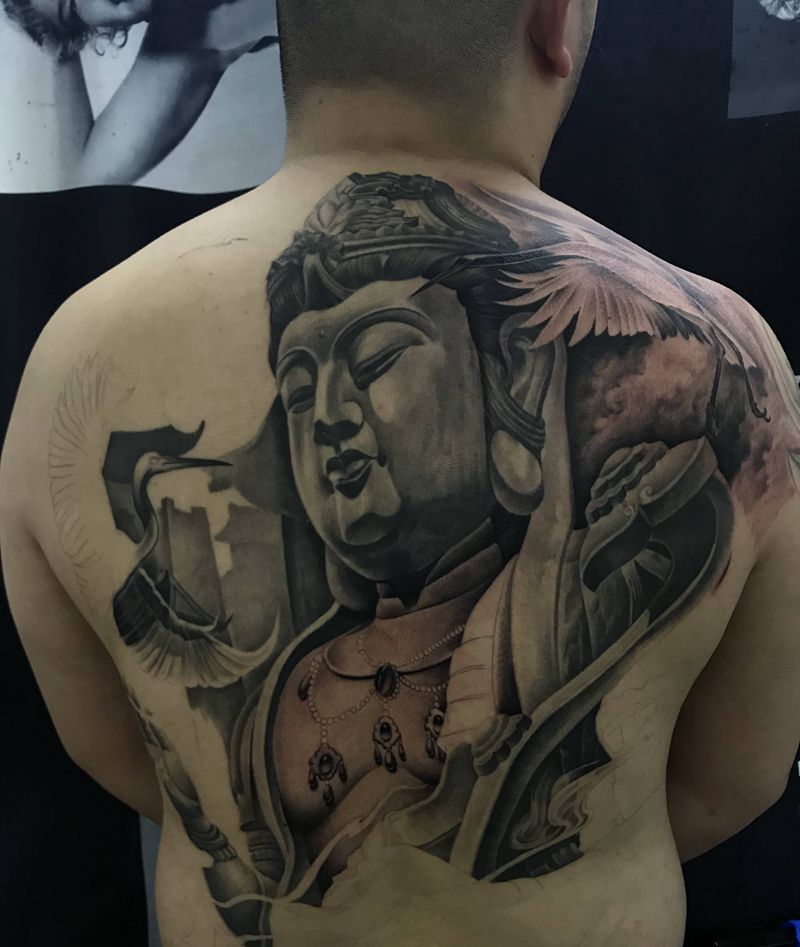 当前位置: 首页 >浙江省宁波市纹身店-名品轩刺青纹身图案>未完待续纹身图片_背部欧美写实佛满背佛纹身图案