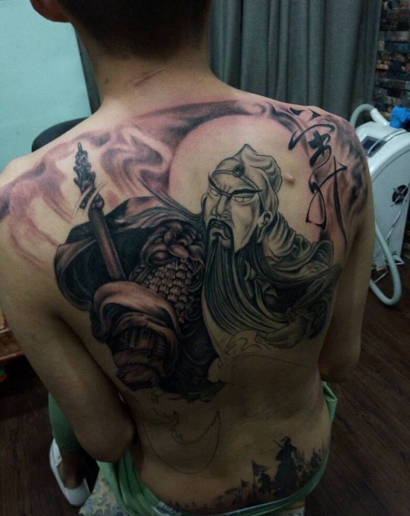 当前位置: 首页 >浙江省宁波市纹身店-名品轩刺青纹身图案>满背关公纹身图片