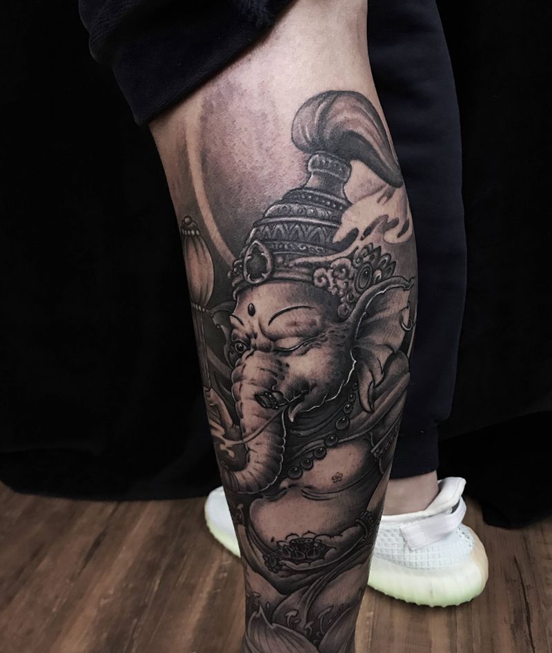 当前位置: 首页 >浙江省宁波市纹身店-名品轩刺青纹身图案>小腿象神纹身图片_腿部新传统象神纹身图案