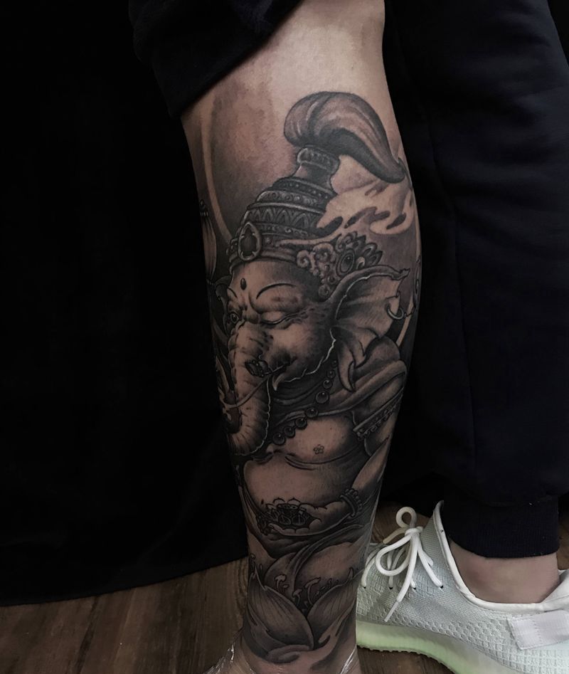 当前位置: 首页 >浙江省宁波市纹身店-名品轩刺青纹身图案>小腿象神纹身图片_腿部新传统象神纹身图案