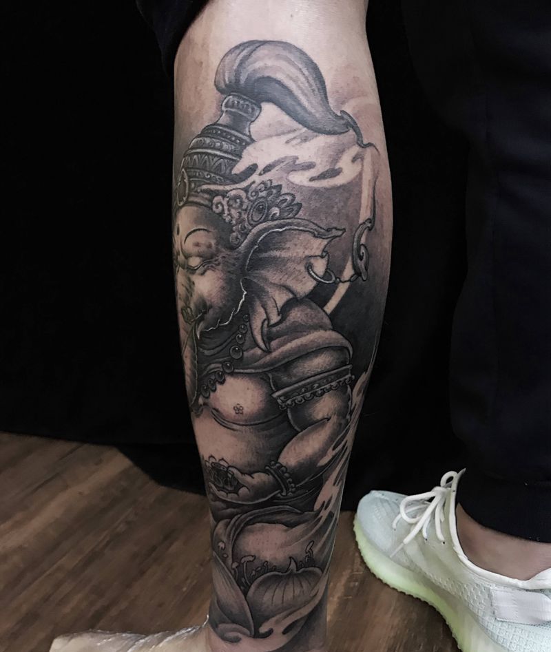 当前位置: 首页 >浙江省宁波市纹身店-名品轩刺青纹身图案>小腿象神纹身图片_腿部新传统象神纹身图案