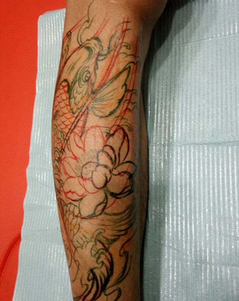 当前位置: 首页 >浙江省宁波市纹身店-名品轩刺青纹身图案>小腿鲤鱼纹身图片_腿部传统动物成品纹身图案