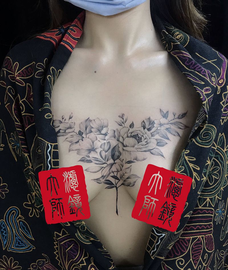 当前位置: 首页 >浙江省宁波市纹身店-名品轩刺青纹身图案>花胸纹身图片_胸部点刺素花花胸纹身图案