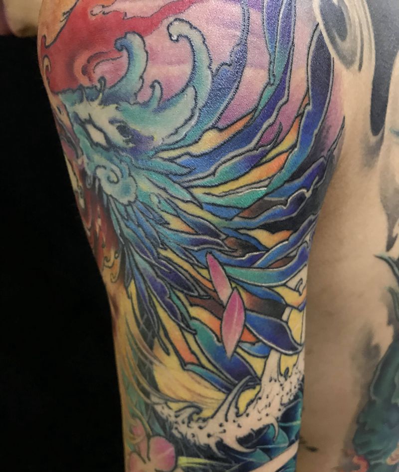 当前位置: 首页 >浙江省宁波市纹身店-名品轩刺青纹身图案>凤凰花臂,下次收尾纹身图片_手臂新传统水彩凤凰花臂彩色凤凰纹身图案